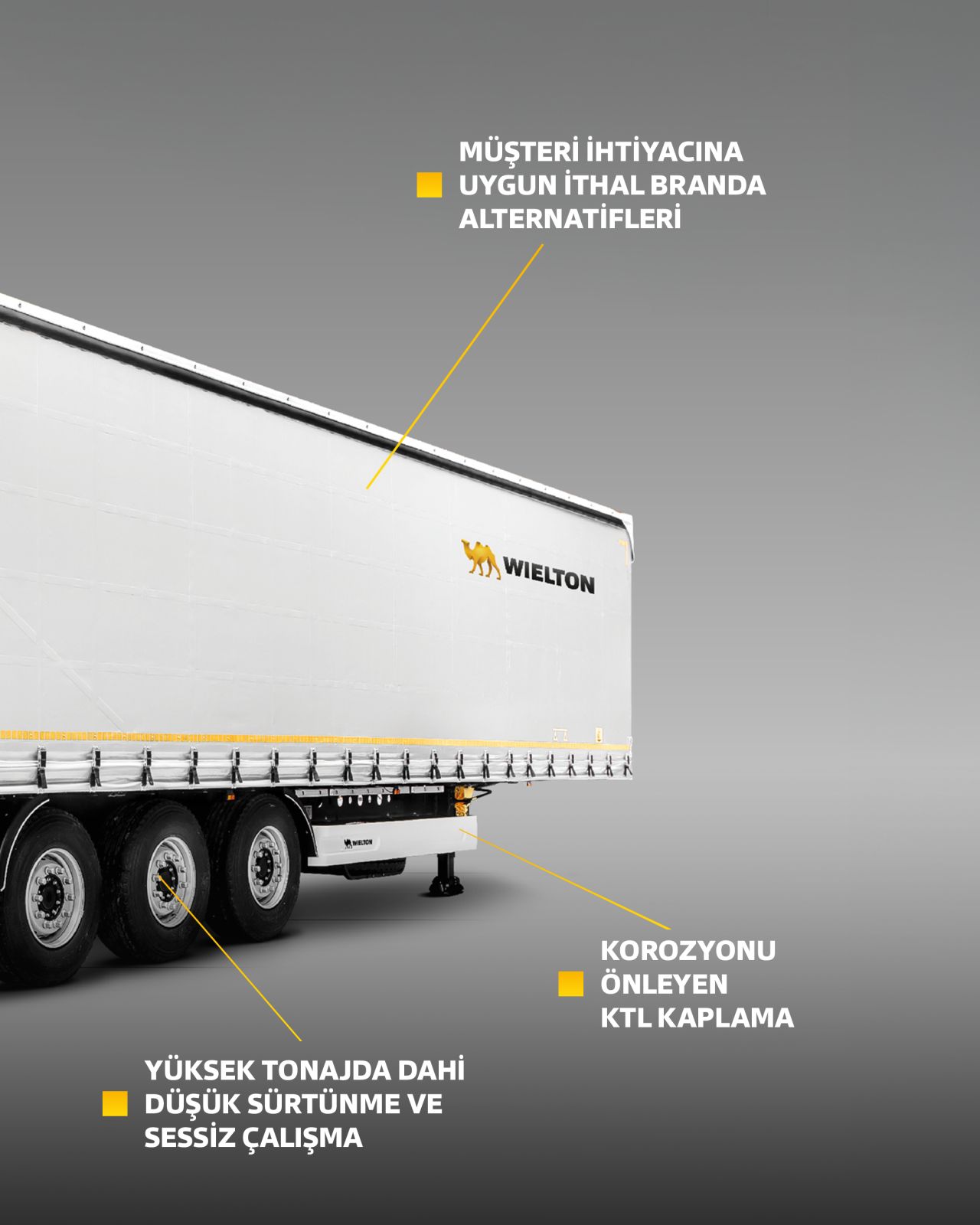 Farklı tür yükleri taşıyacak şekilde tasarlanan yarı römorklar, büyük hacimlerine rağmen güvenliği ön planda tutan manevra kabiliyeti sayesinde güvenli bir yolculuk sunuyor. Yenilikçi tasarımı sayesinde yüklerin güvenle yüklenmesine ve korunmasını yardımcı oluyor.